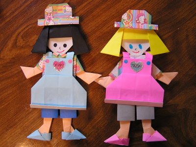 大げさなギフトを返すのもためらわれ、かいけと二人で折り紙でお人形を作って
