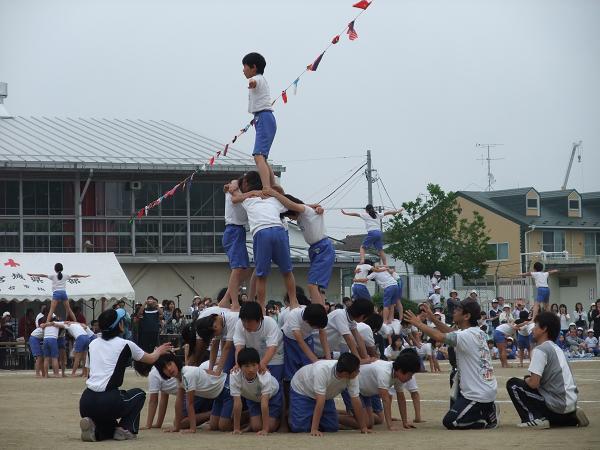 6年生のお兄さんの姉さんの演技はすごかった!かいけも来年は組み体操に挑戦だね。