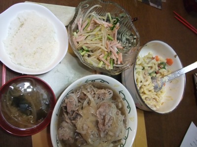 酢の物、サラダ、牛肉の煮たの。