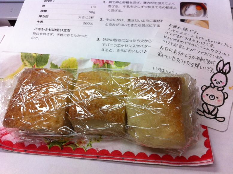 先日、スコーン食べたいなぁとつぶやいたら、