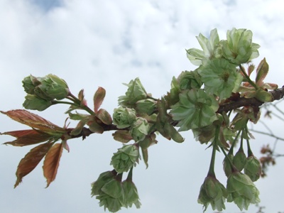 近所の公演の緑の桜。御衣黄。今年も咲いていました。