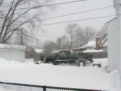 お隣では契約している除雪会社のトラックが来て、3分で終了。