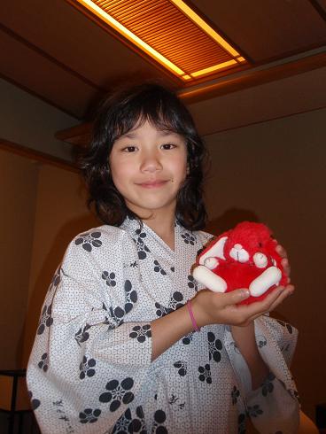 かいけは前からほしかった赤いウサギを売店で見つけ、早速ご購入。ご機嫌です。
