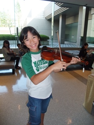 体験コーナーでかいけヴァイオリンに挑戦♪