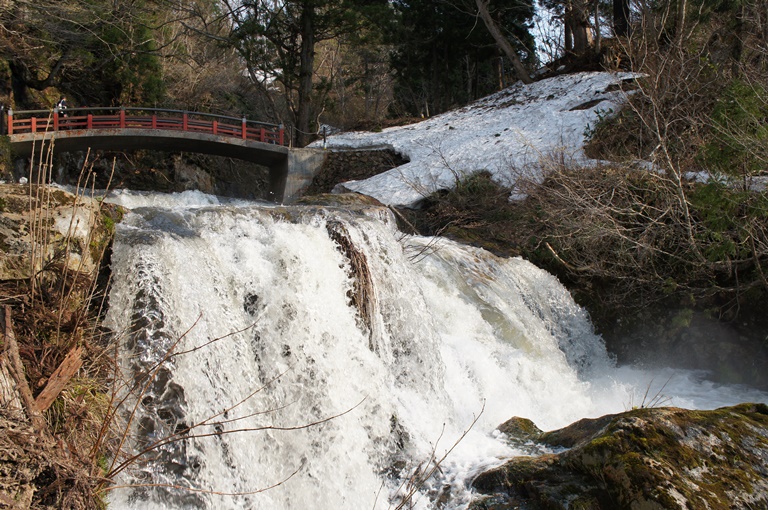 残雪と白糸どころか豪快な雪解け水の白糸の滝