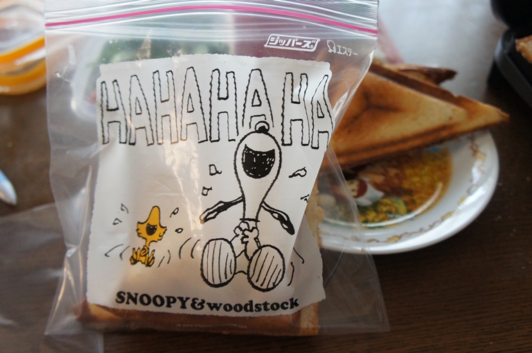 サンドイッチはスヌーピーのバッグに入れます。