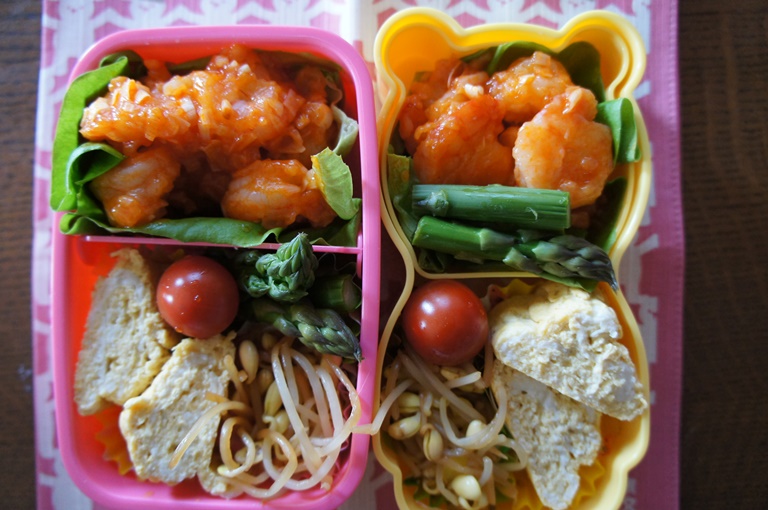 エビチリ弁当。だし巻き卵。