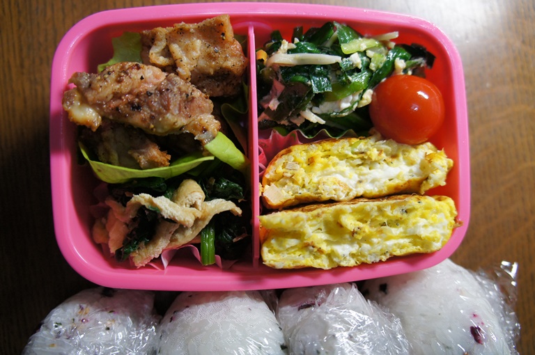 グリルチキン。卵焼きはシラス入り。