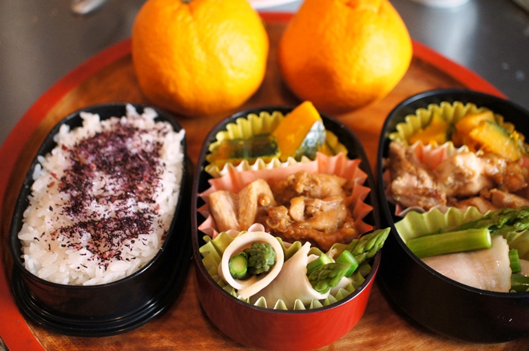 アスパラベーコン。かぼちゃのはちみつ煮。