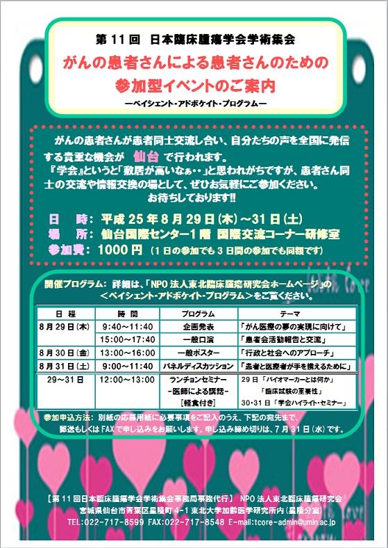 第11回日本臨床腫瘍学会期間中(2013/8/29-31)に開催される、