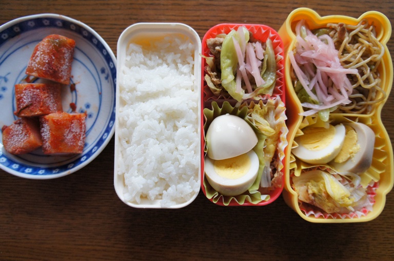 味玉、焼きそば。ご飯が冷めたら