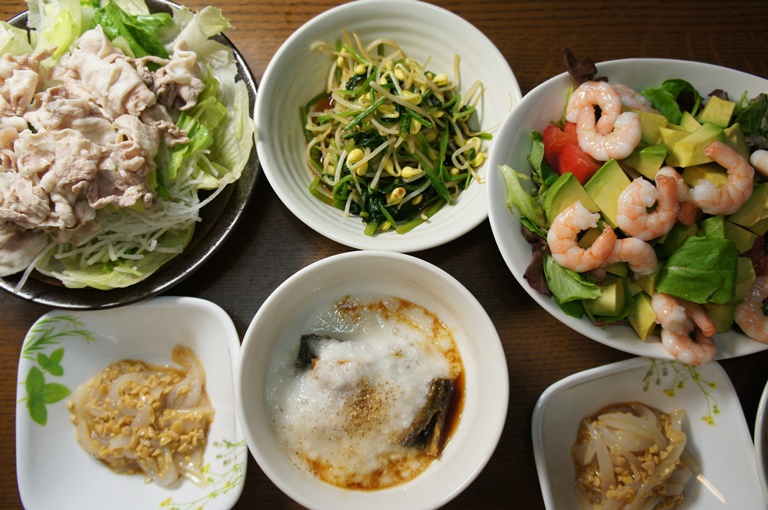 いか納豆。ピリ辛もやし。豚しゃぶ。