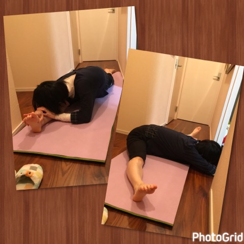 i Phone のカメラにタイマー機能があると知ったので、試しにお風呂上がりストレッチを撮影してみました