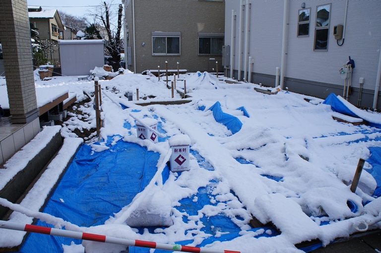 朝起きてみると雪。