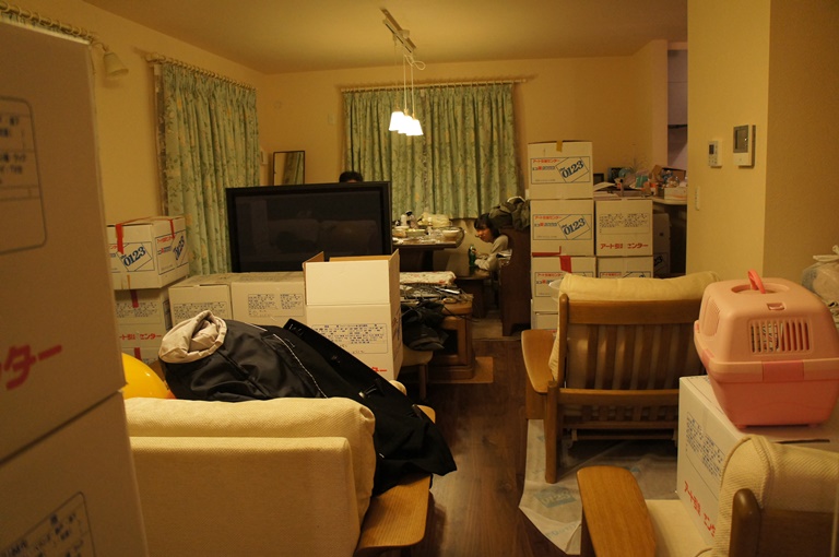 引っ越しは朝から始めて夜までかかりました…。